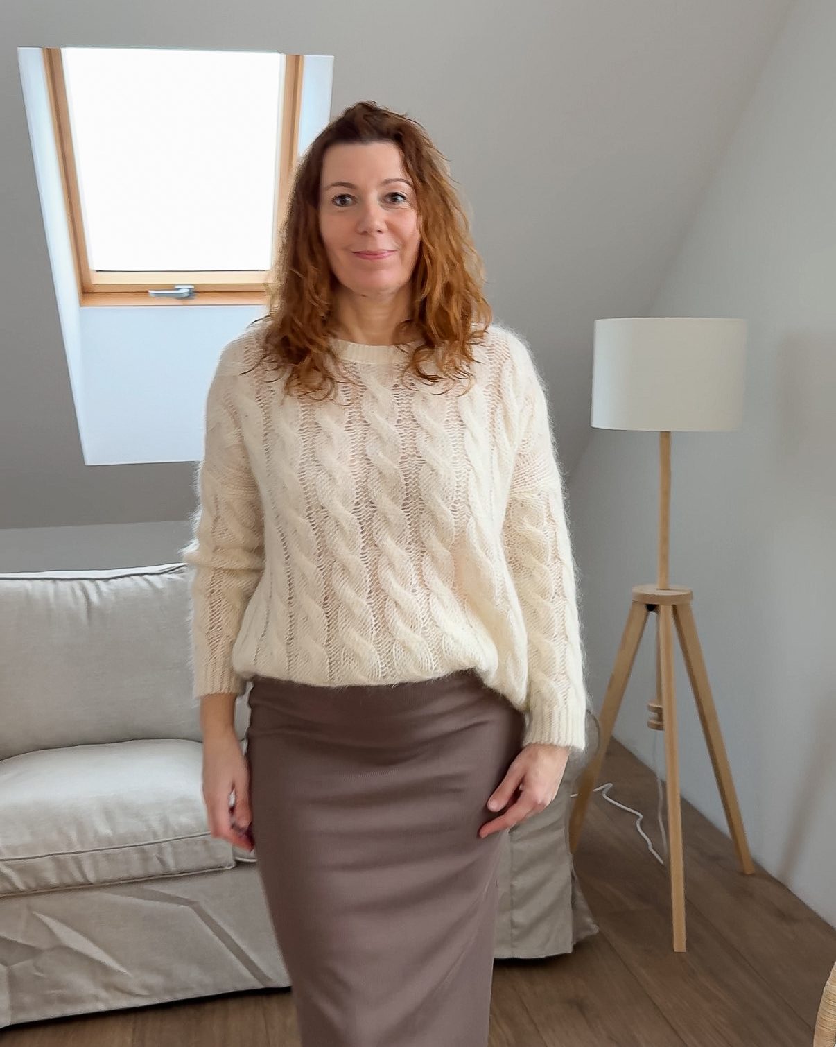 Skład: 38% alpaka, 31% wiskoza, 31% poliamid